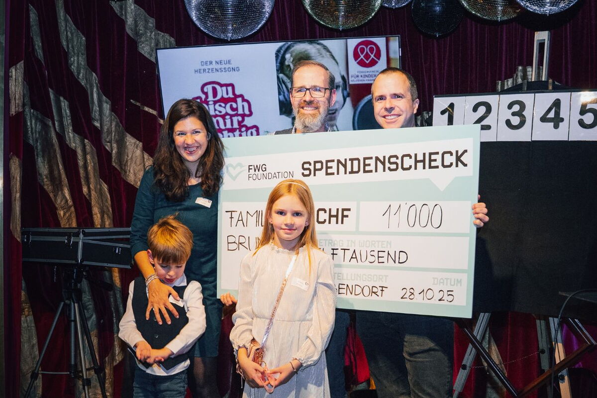 Der Höhepunkt des Abends war die Übergabe des Spendenschecks über CHF 11’000.– an Lewis und seine Familie. Dank dieser Unterstützung kann nun ein Elektro-Opair-Rollstuhlfahrrad finanziert werden – damit die Familie wieder gemeinsame Ausflüge unternehmen kann.