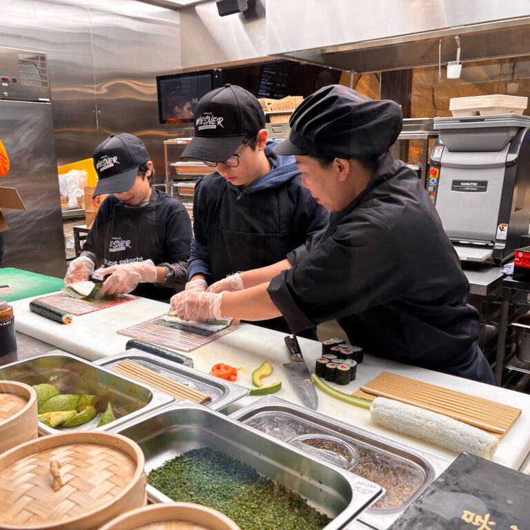 Erlebe hautnah wie unsere Küchen-Profis ihr Handwerk beherrschen und lerne selbst die Kunst des Sushi-Rollens oder Wok-Zaubers. Du bekommst Einblick in alle Bereiche der Küche und legst selber Hand an.